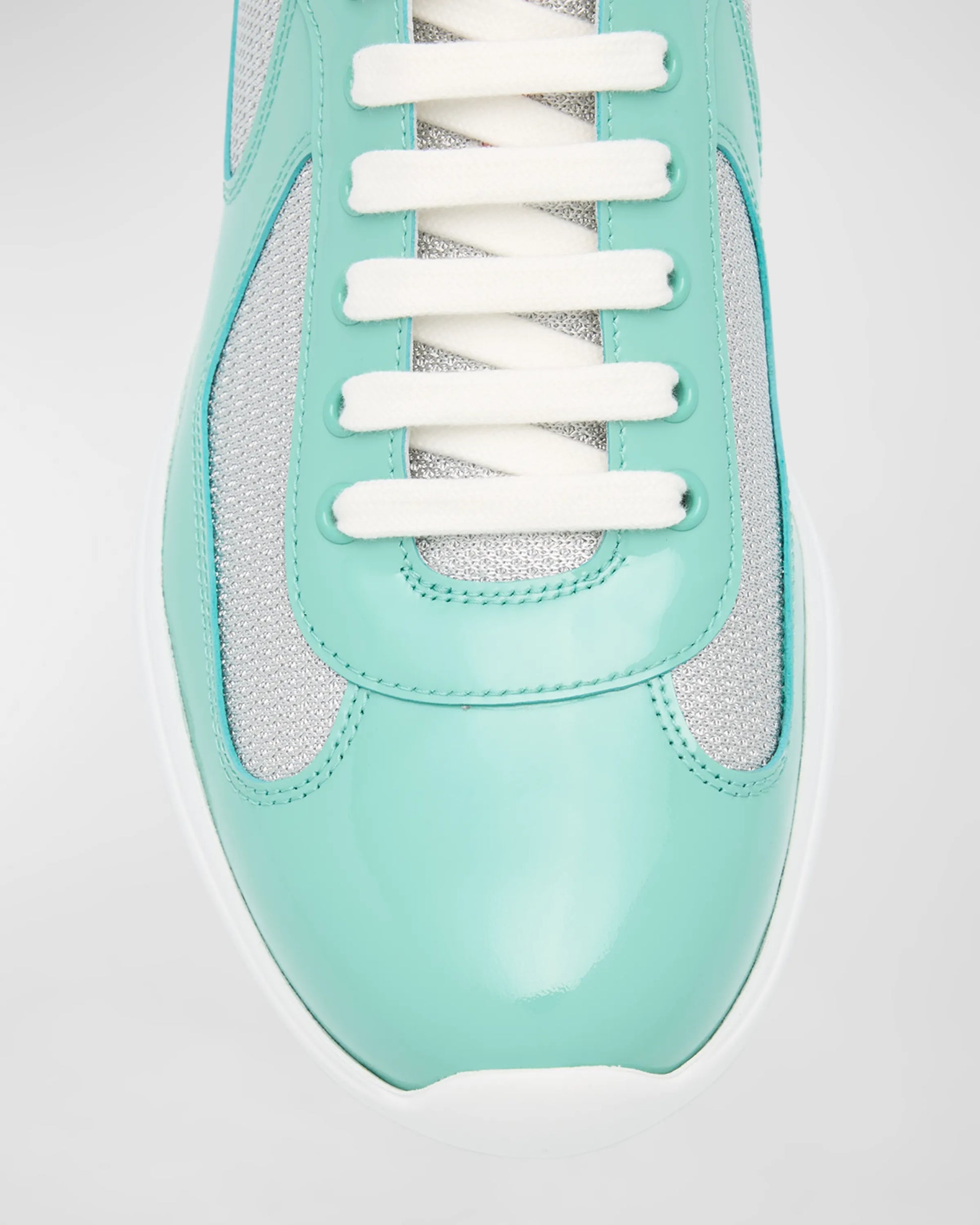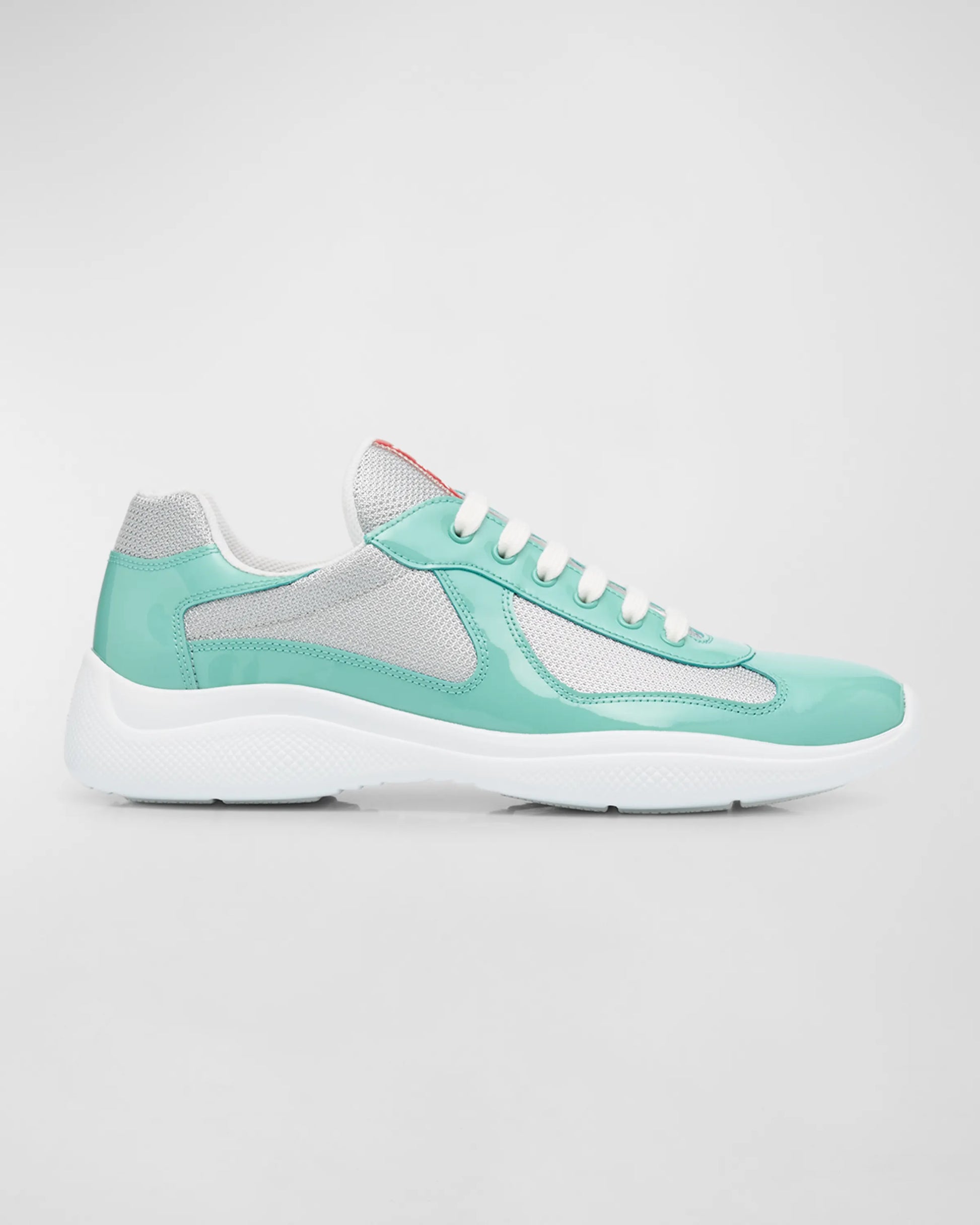 Les Prada America’s Cup Jade Green Silver se distinguent par leur teinte vert jade audacieuse associée à des détails argentés métallisés pour une allure résolument moderne. Confectionnées en cuir verni et mesh technique, elles offrent un confort optimal, une excellente respirabilité et un maintien structuré. Cette version luxueuse et originale du modèle emblématique allie performance sportive et esthétique contemporaine signée Prada.